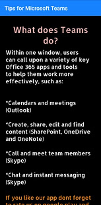 Wskazówki dla zespołów Spotkaniato darmowy program dla systemu Android, który należy do kategorii „Społecznościowe i komunikacyjne” .